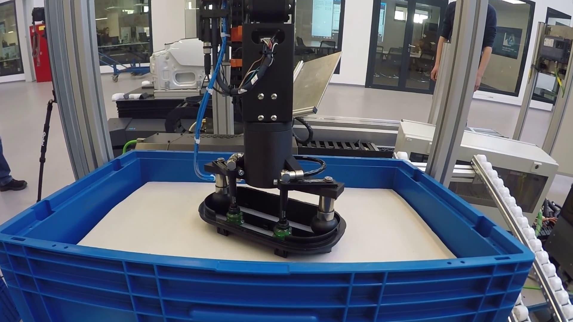 Thousands of materials are removed from crates for assembly every day in automobile production. In this project at the Volkswagen plant in Emden, forced ventilation frames for the Passat /Arteon are separated.